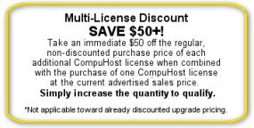 Please understand that the significantly discounted CompuHost V3 upgrade is offered and intended as a means for our valued CompuHost V1 and V2 licensees to upgrade their existing and fully activated (licensed) CompuHost V1 or V2 installations ONLY.